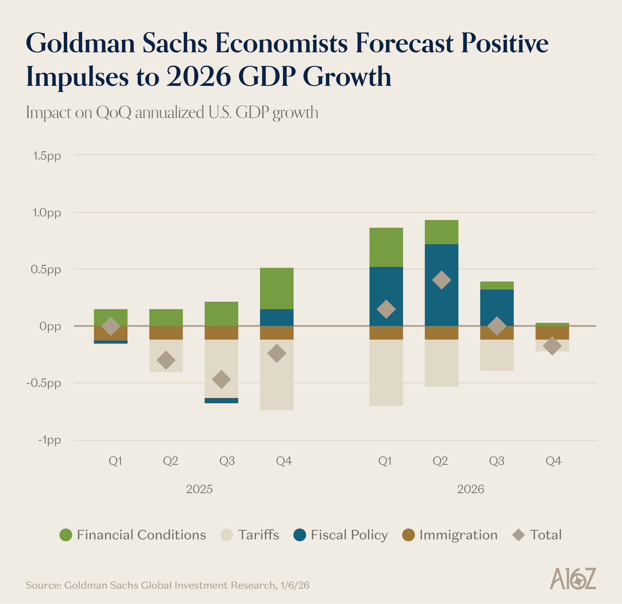We have fiscal stimulus, we have monetary stimulus . . . we’re in a rate cutting cycle . . . We are in a capital investment supercycle, like something we’ve never seen. Last year, the four largest companies contributed 1% to GDP growth with their $400 billion of spending . . . it’s just such a cocktail of stimulus that it’s very, very hard to slow the economy down - David Solomon