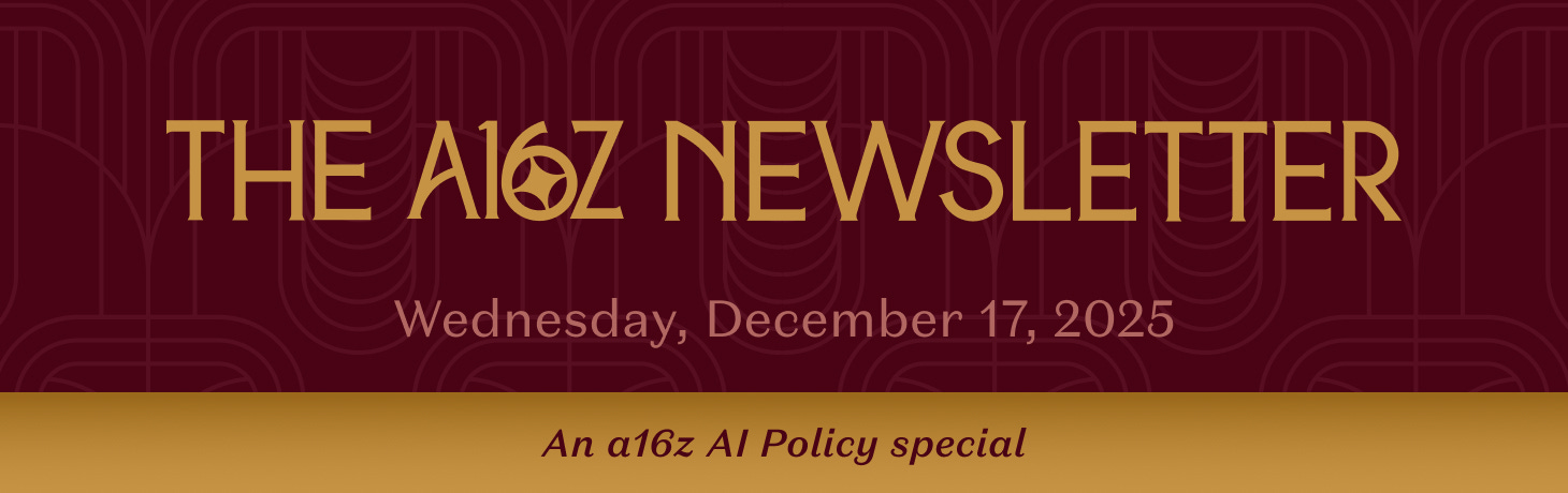 This newsletter is provided for informational purposes only, and should not be relied upon as legal, business, investment, or tax advice. Furthermore, this content is not investment advice, nor is it intended for use by any investors or prospective investors in any a16z funds. This newsletter may link to other websites or contain other information obtained from third-party sources - a16z has not independently verified nor makes any representations about the current or enduring accuracy of such information. If this content includes third-party advertisements, a16z has not reviewed such advertisements and does not endorse any advertising content or related companies contained therein. Any investments or portfolio companies mentioned, referred to, or described are not representative of all investments in vehicles managed by a16z; visit https://a16z.com/investment-list/ for a full list of investments. Other important information can be found at a16z.com/disclosures. You’re receiving this newsletter since you opted in earlier; if you would like to opt out of future newsletters you may unsubscribe immediately.