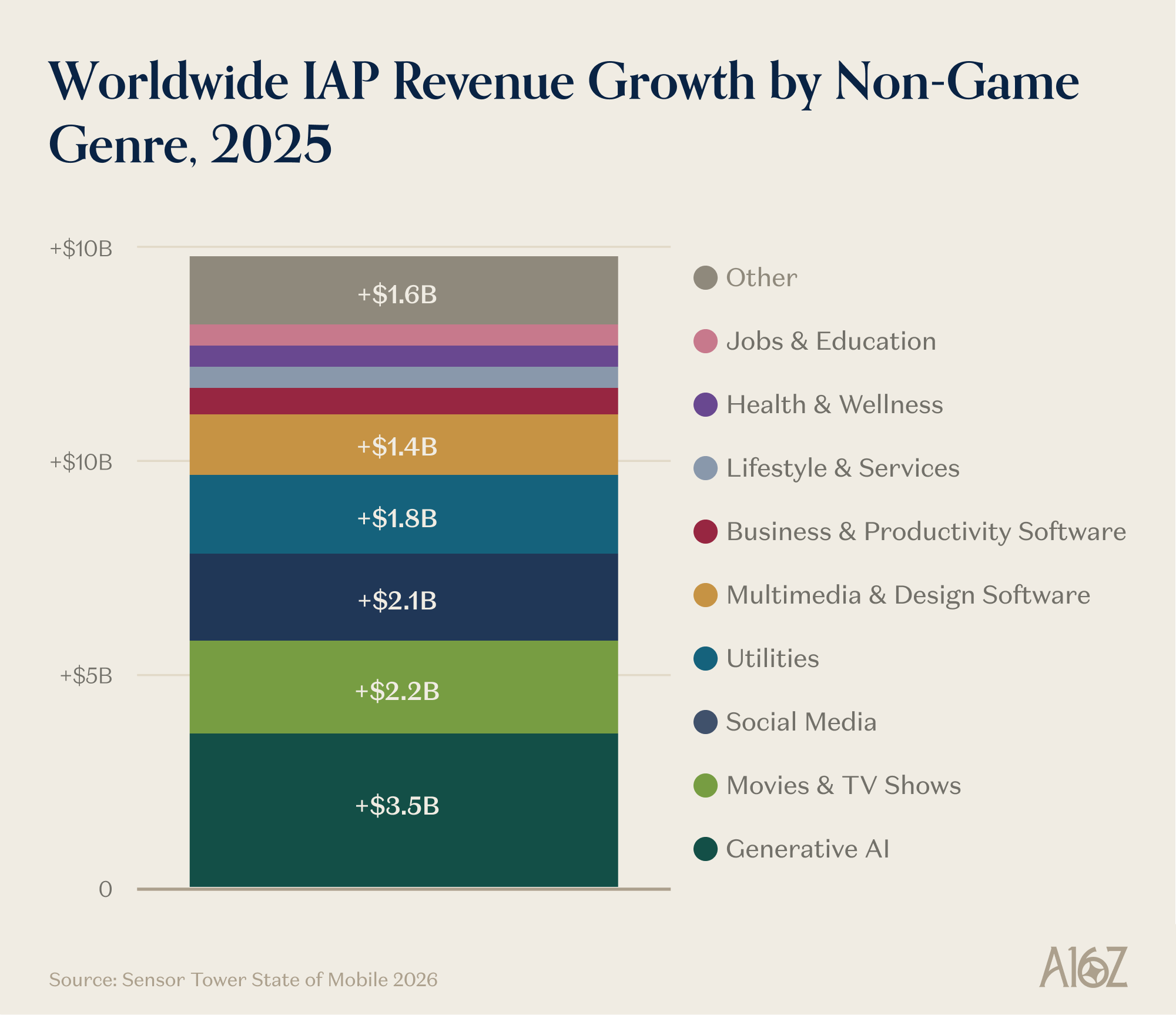 GenAI led app revenue growth, by adding $3.5B in 2025.