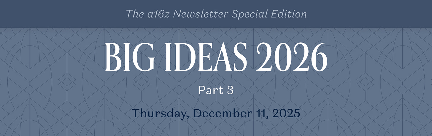 Over the past two days, we’ve shared the ideas our Infrastructure, Growth, Bio + Health, Speedrun, Apps, and American Dynamism teams think builders will tackle in 2026.