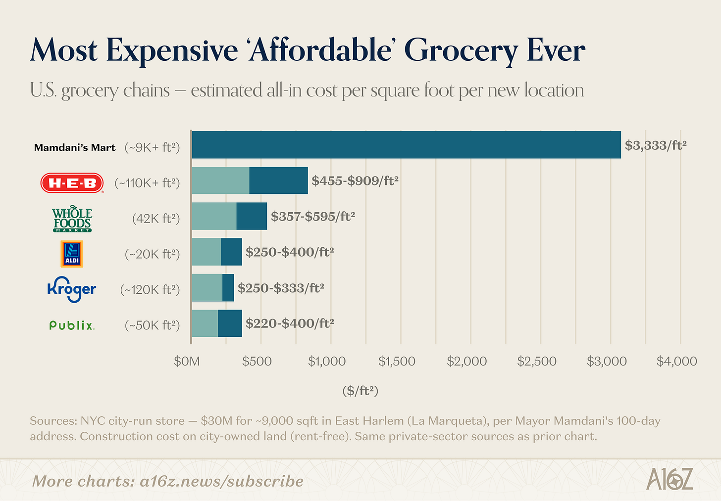 Yes, we used to AI to do this calculation. No, it’s not a rigorous analysis of the actual per sqft cost of opening a grocery store in NYC. It’s for illustrative purposes only, and if the robot made a mistake, hopefully that doesn’t ruin anyone’s weekend.