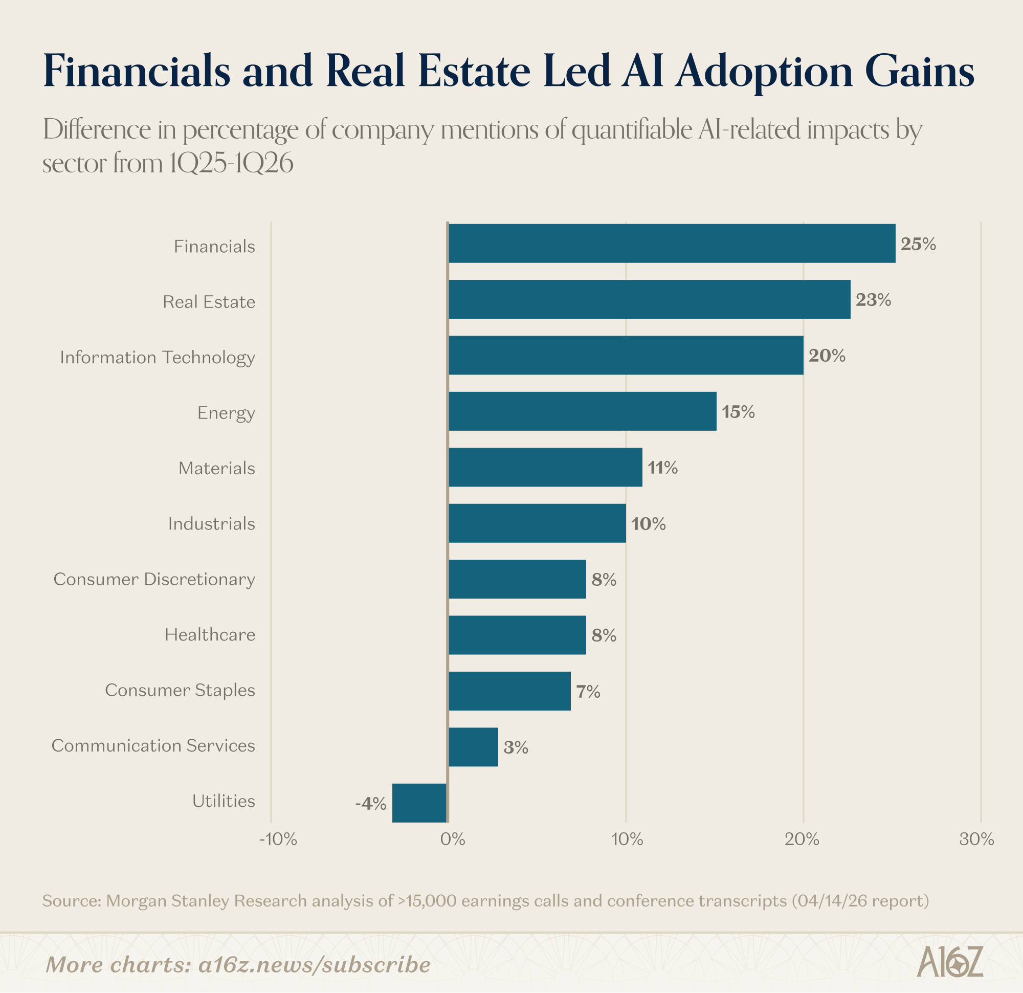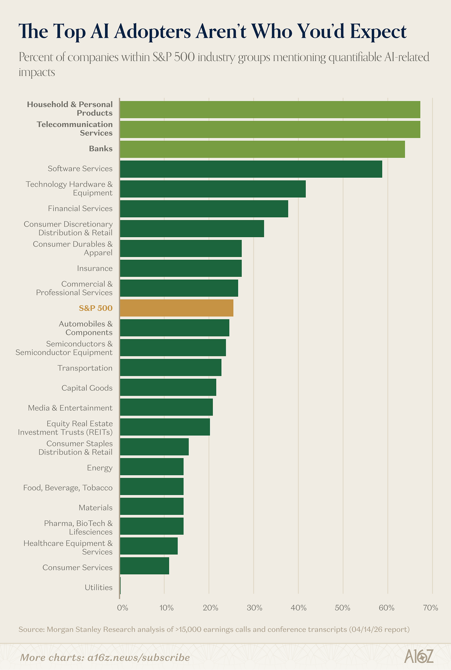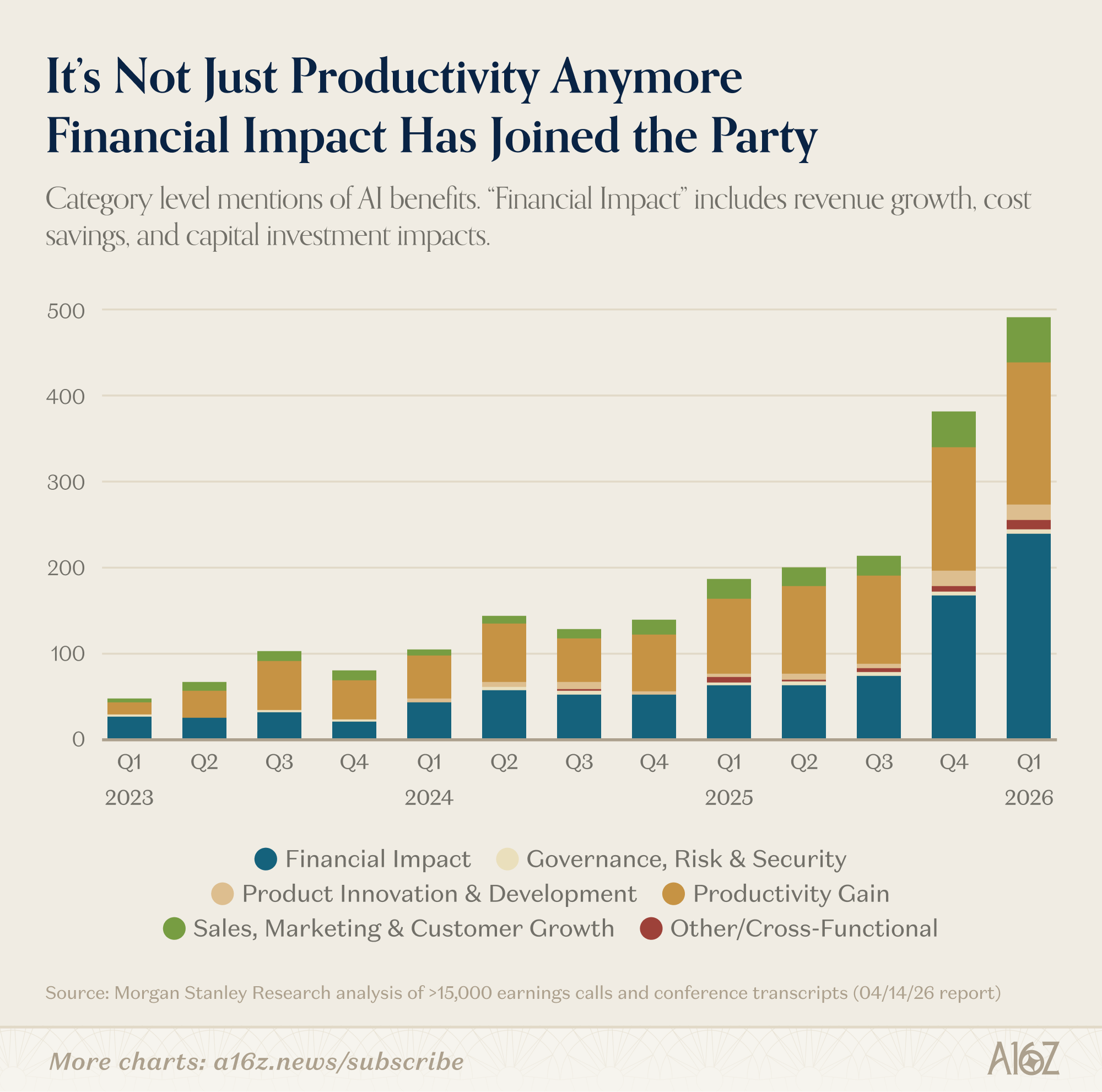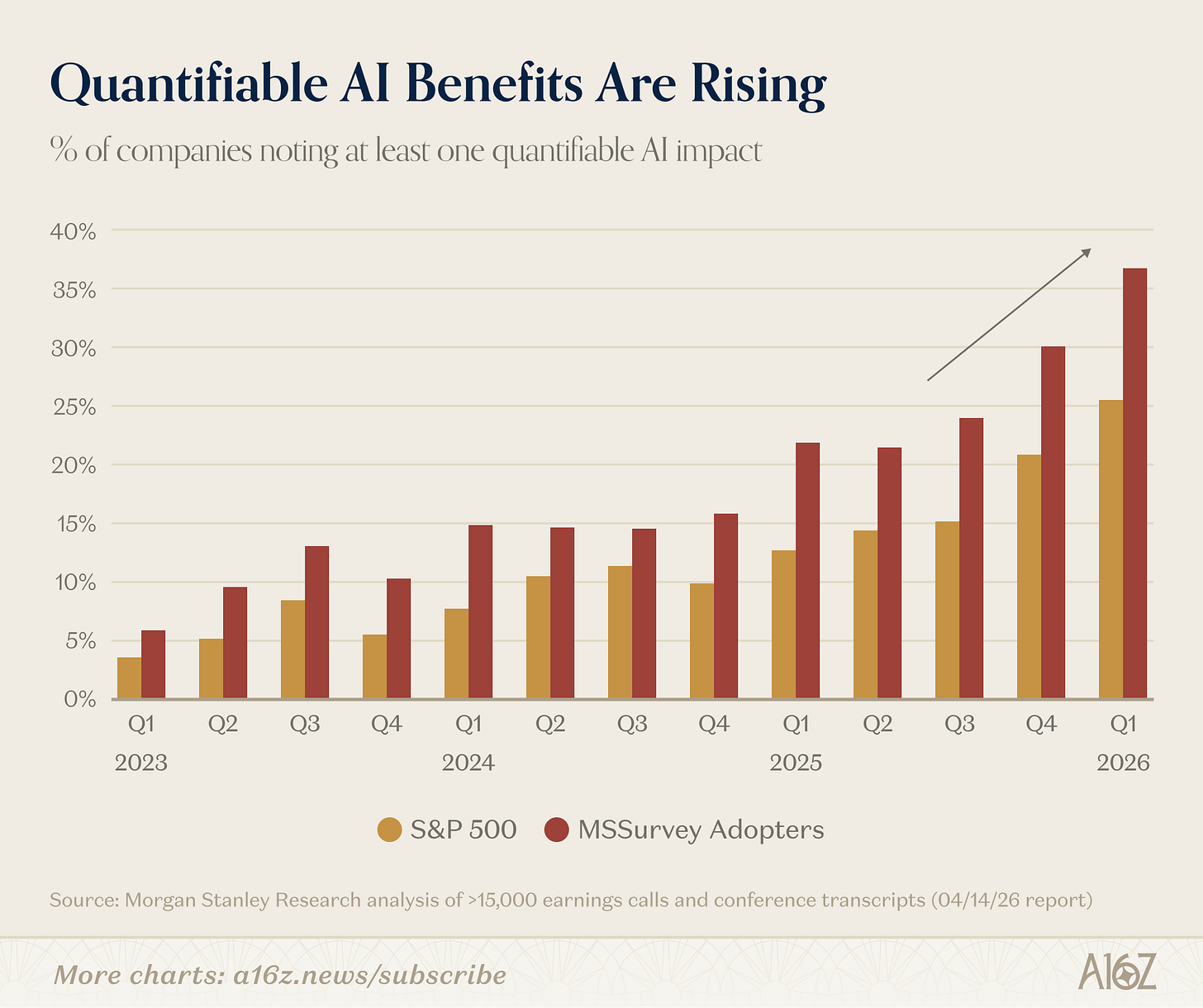 There is plenty of survey data, which is squishy by nature, including this survey from Morgan Stanley, which asks for “quantifiable” AI impacts, which is still squishy, but at least somewhat less so.