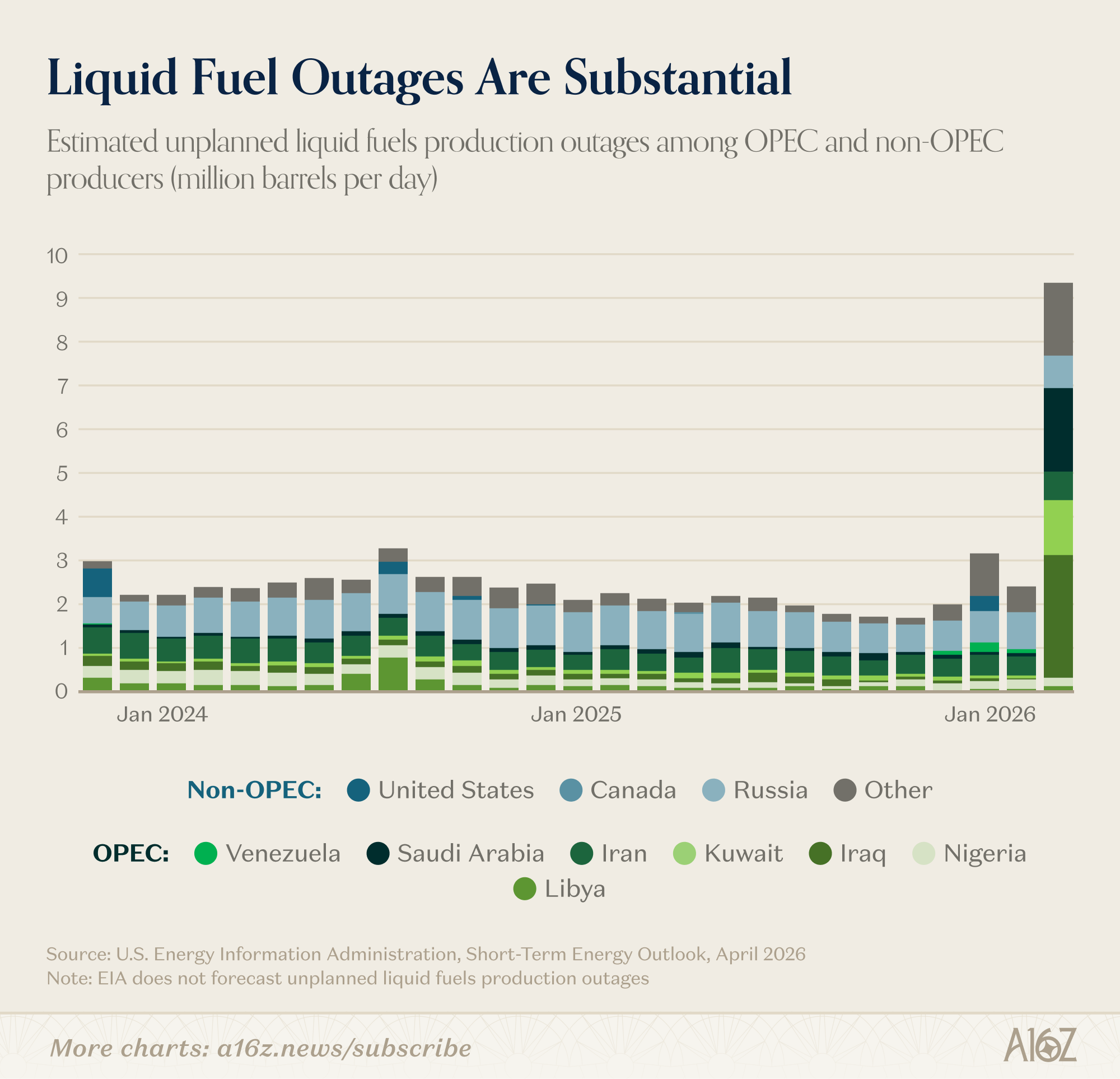 Unplanned production outages of liquid fuels are ~4.5X larger than the typical month.