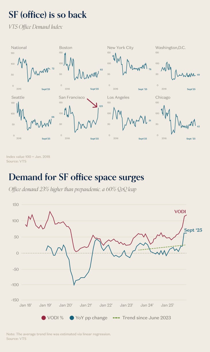 For the past 4 years, demand for SF office space had fallen off a cliff, running ~50% below pre-pandemic levels, according to data from VTS.