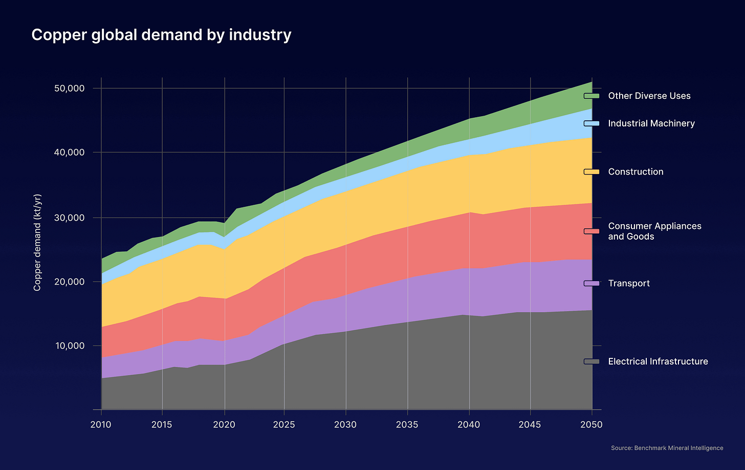 As our global energy, transport, infrastructure, and defense systems modernize, we need copper. A lot of it. By 2050, we must double global copper mining and refining capacity - this means mining and refining more copper in the next 25 years than in all human history combined.