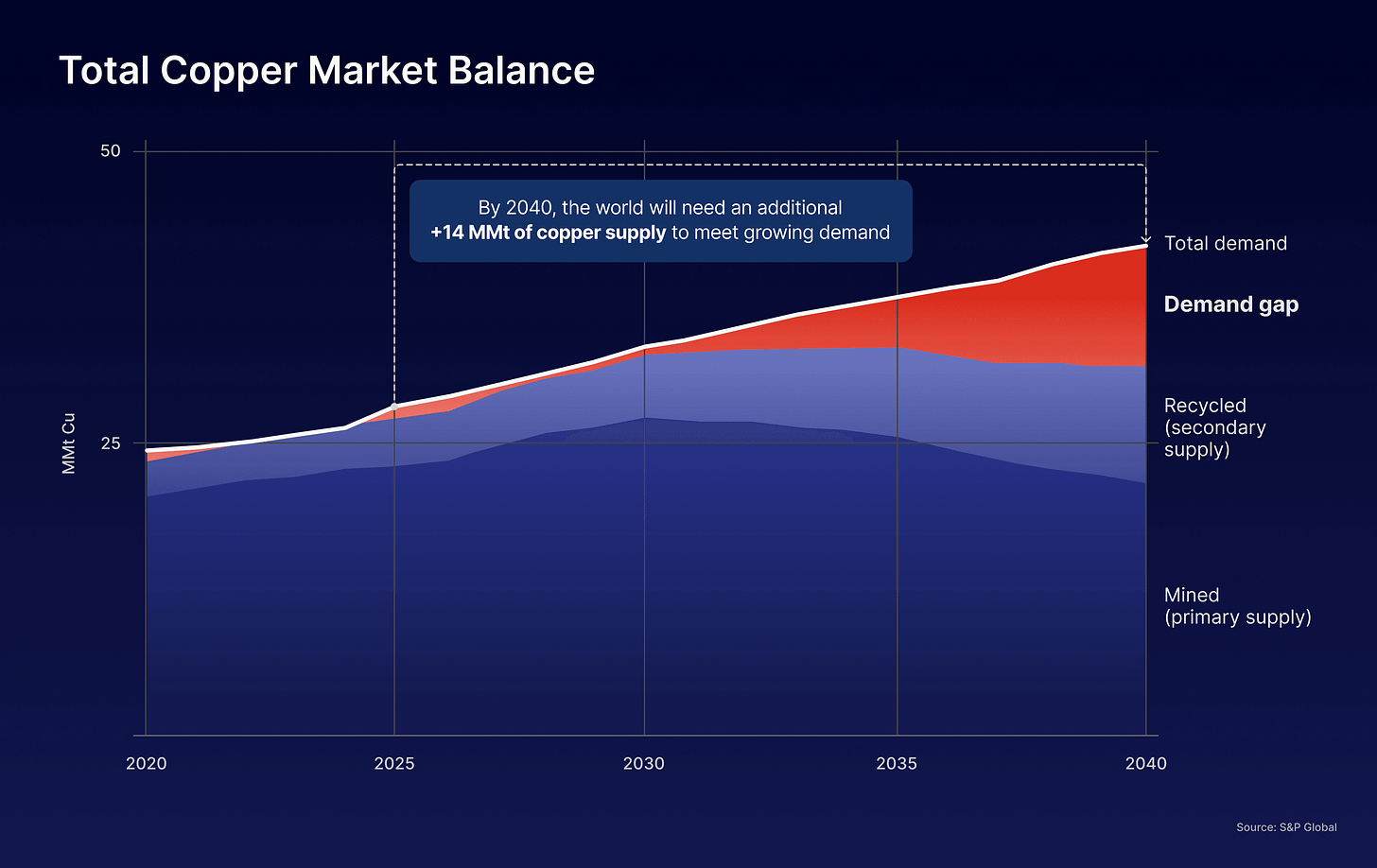 The global copper supply system is under mounting pressure. Existing operations are harder to sustain. New sources of supply are more difficult, expensive, and time-consuming to bring online. Meanwhile, demand accelerates from electrification, renewable energy, grid expansion, and industrial growth.