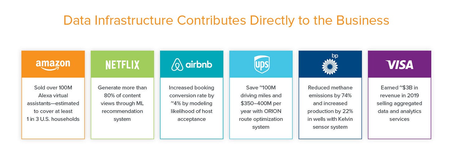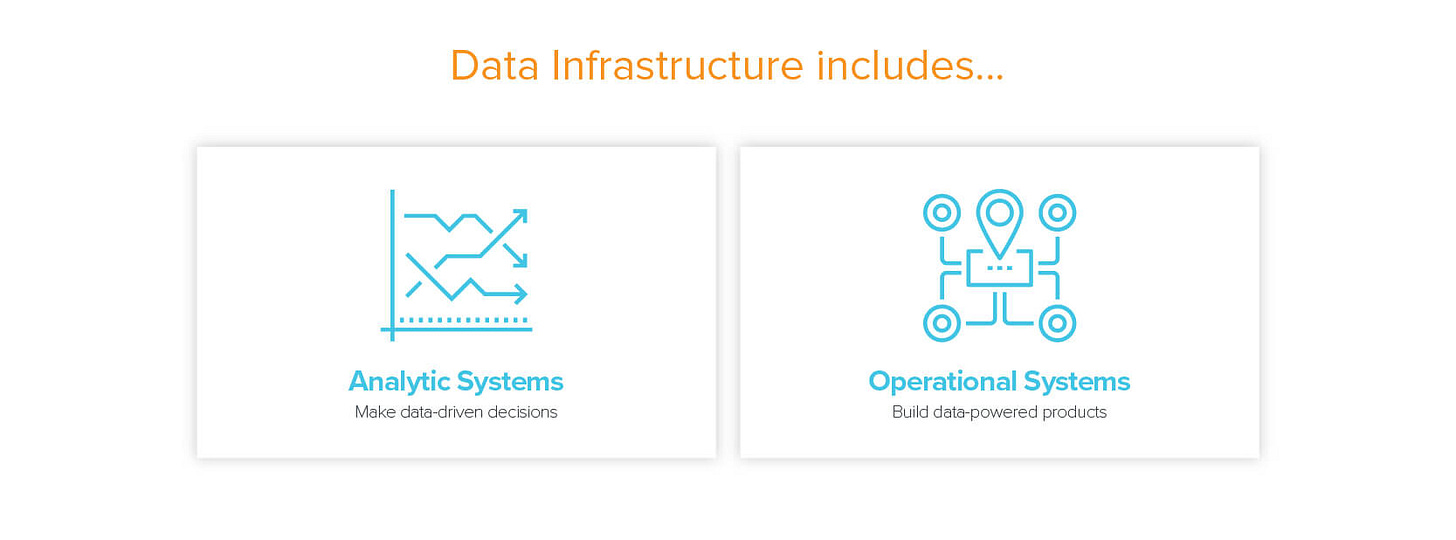 Data infrastructure serves two purposes at a high level: to help business leaders make better decisions through the use of data (analytic use cases) and to build data intelligence into customer-facing applications, including via machine learning (operational use cases).
