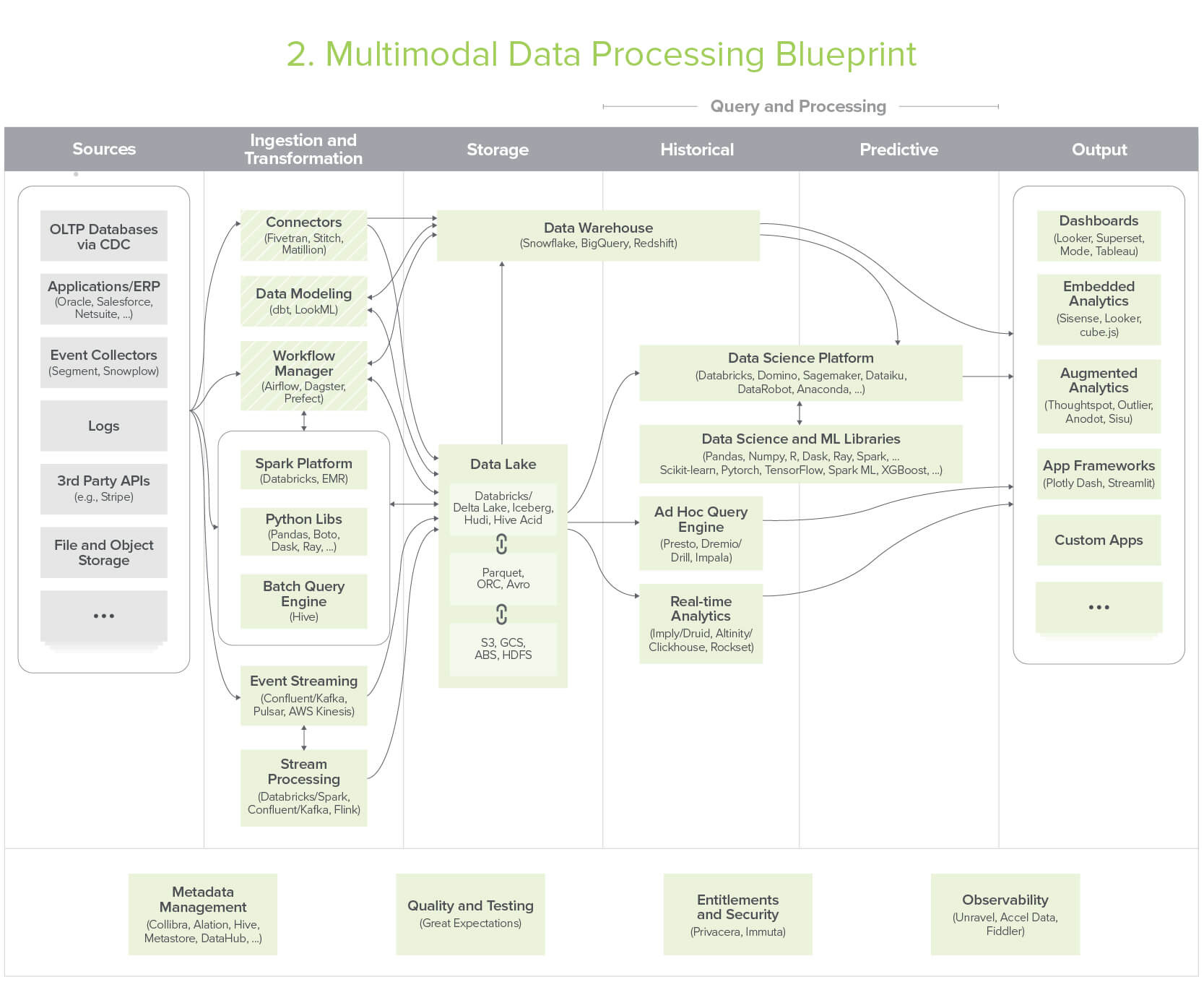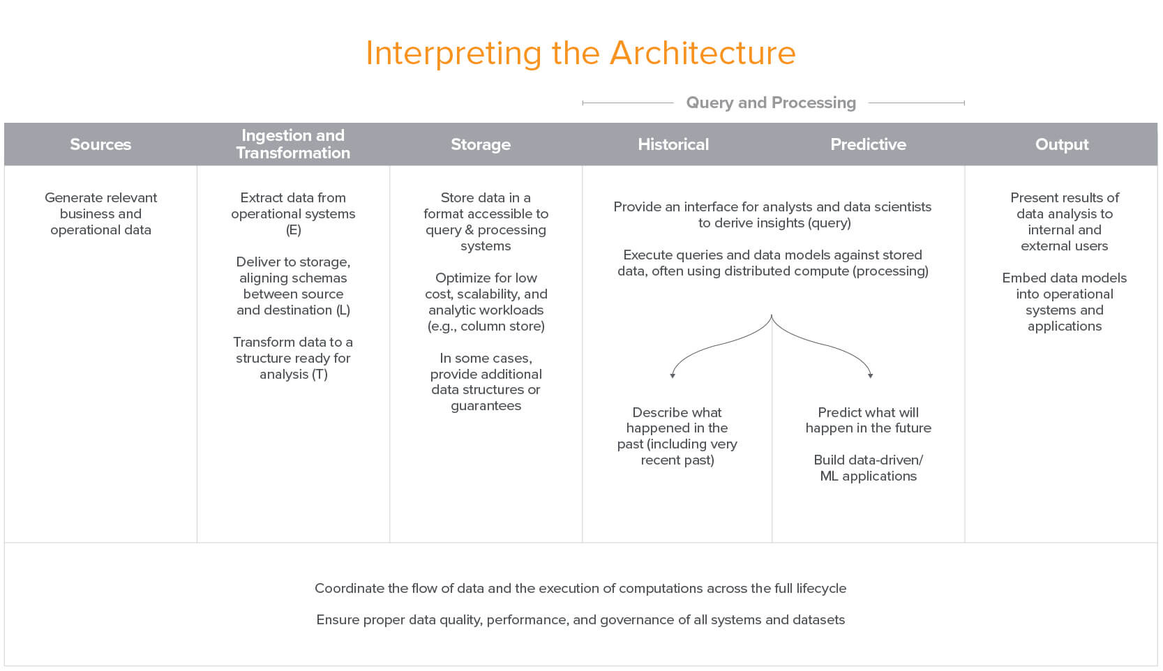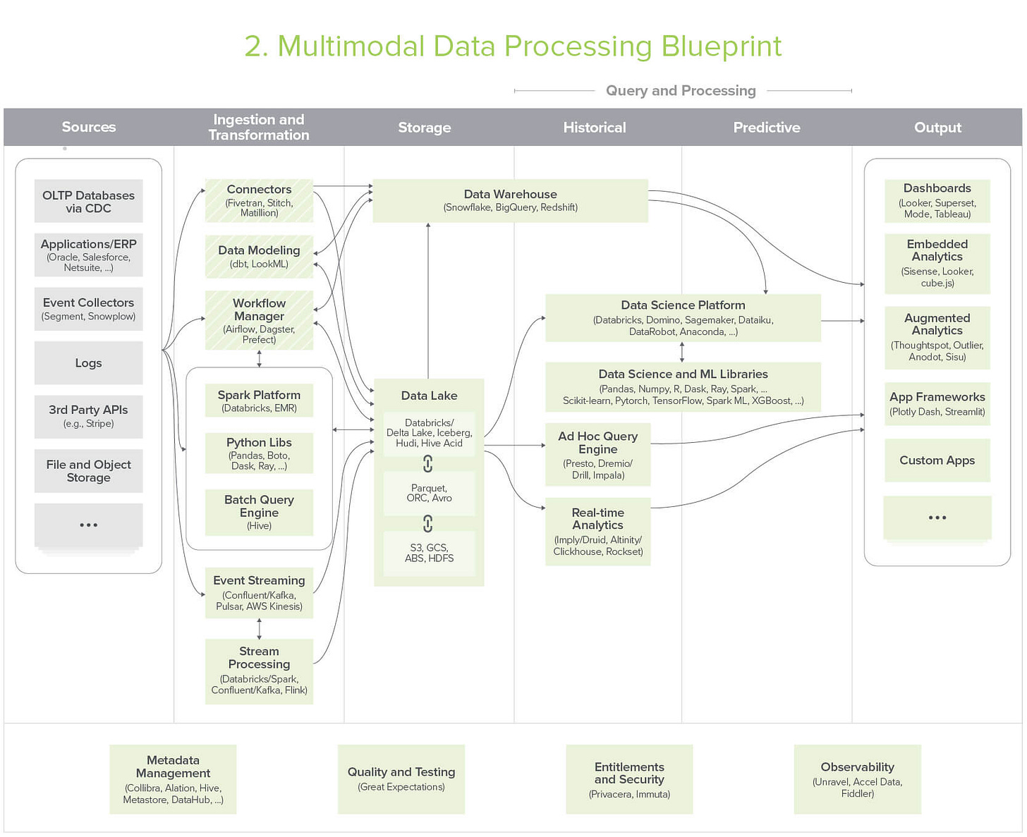 To make the architecture as actionable as possible, we asked experts to codify a set of common “blueprints” – implementation guides for data organizations based on size, sophistication, and target use cases and applications.