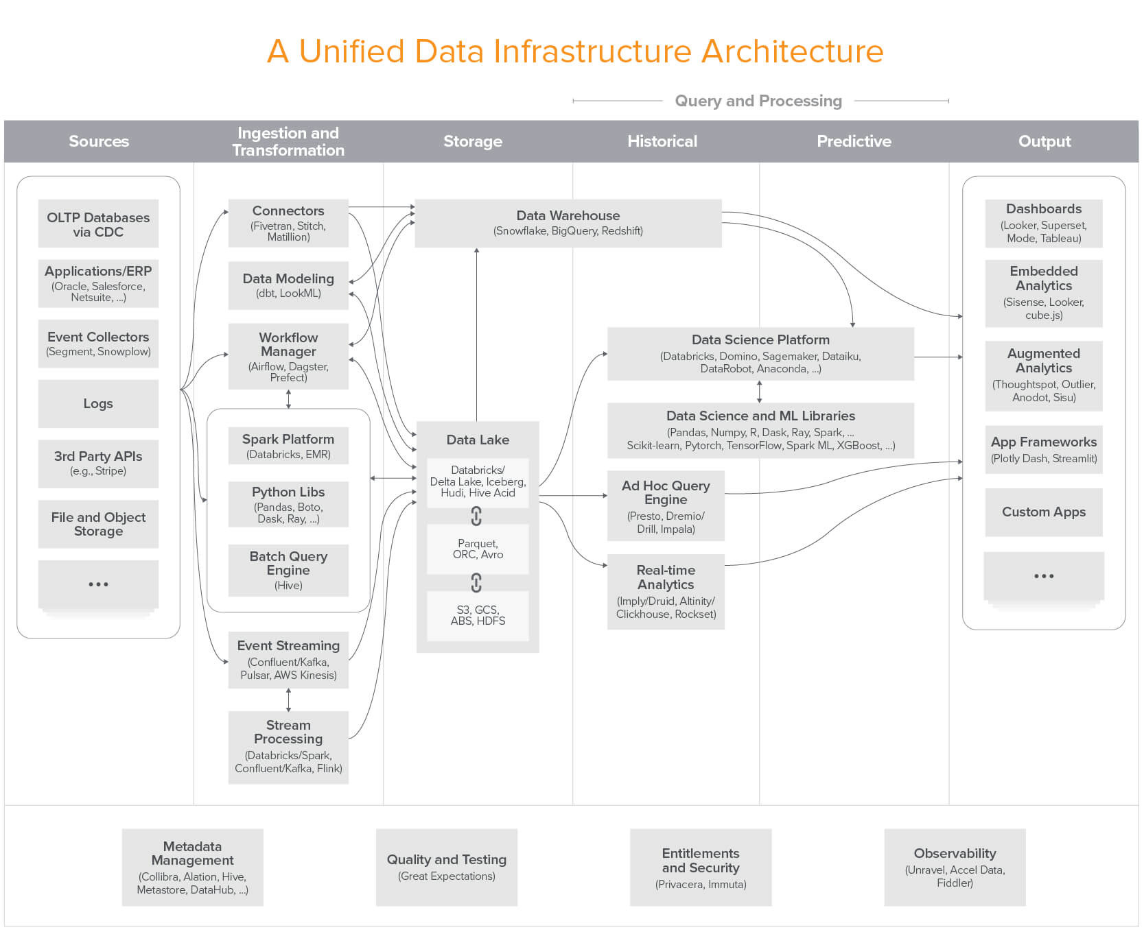 Due to the energy, resources, and growth of the data infrastructure market, the tools and best practices for data infrastructure are also evolving incredibly quickly. So much so, it’s difficult to get a cohesive view of how all the pieces fit together. And that’s what we set out to provide some insight into.