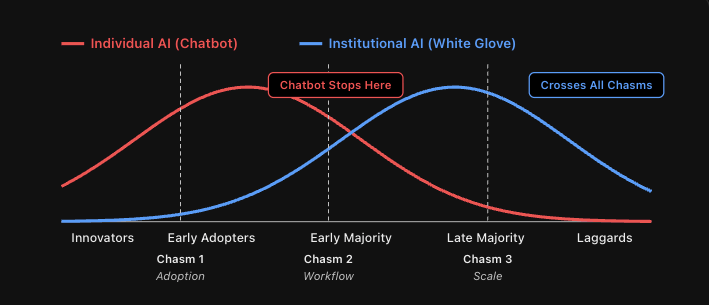 Institutional AI must deliver upside. And upside is a lot harder to commoditize than saved time.