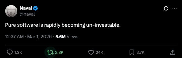 Pure software “is rapidly becoming uninvestable.” Pure services don’t scale. The solution layer, marrying technology to outcomes, is where lasting value accumulates.