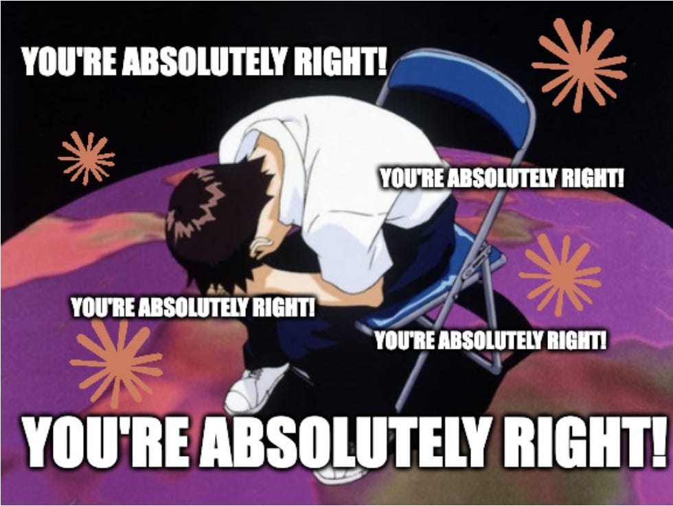 But this level of agreement—of over-alignment—on everything has become comically bad. It’s become a meme in its own right ... Claude’s reflexive “you’re absolutely right!” regardless of whether or not you are, in fact, absolutely right.