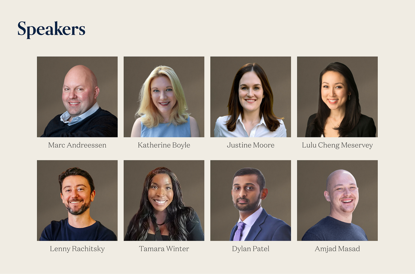 Fellows will hear from a16z powerhouses Marc Andreessen, Katherine Boyle, and Justine Moore, plus industry leaders such as: