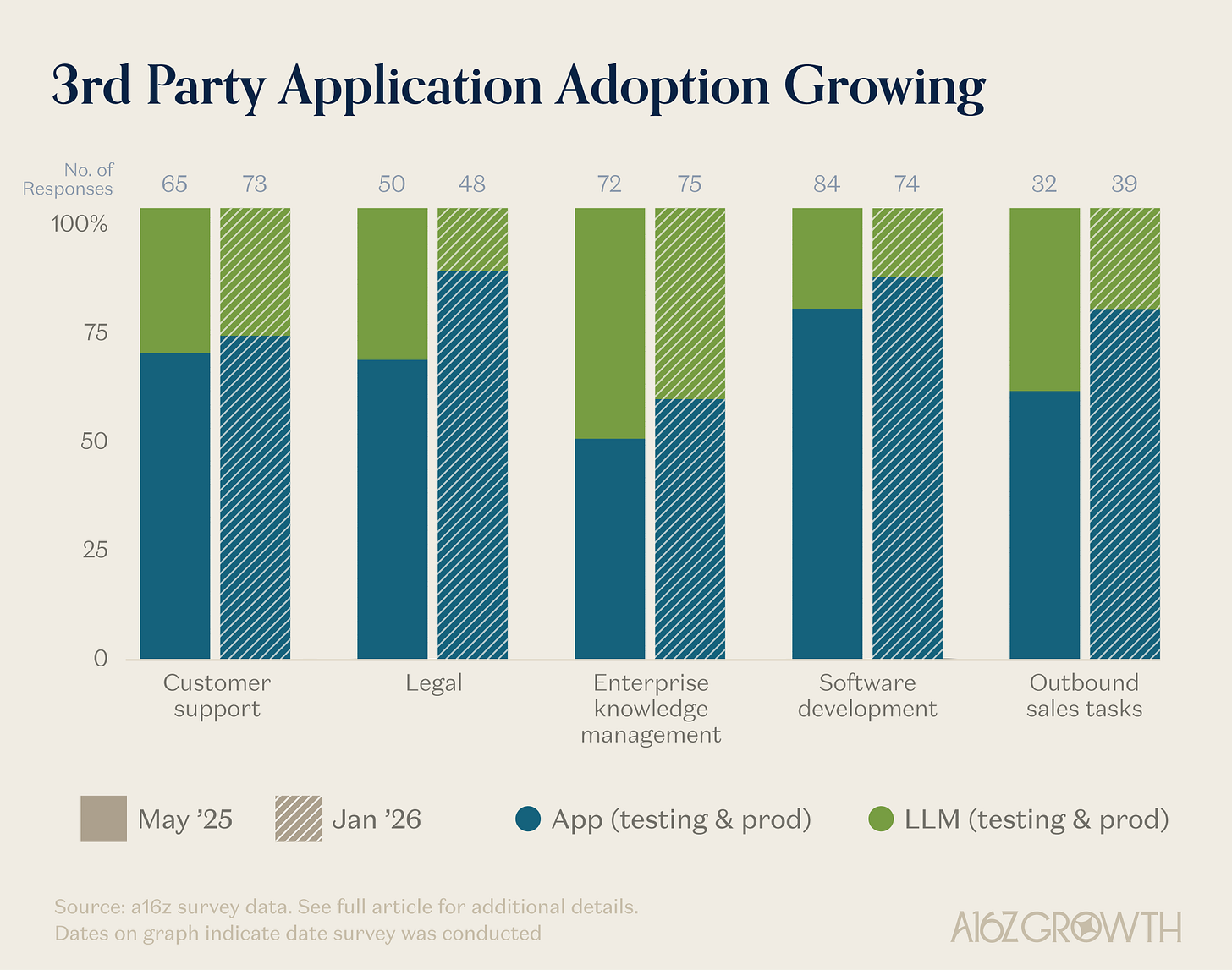 We also wanted to add insight into the age-old question: are enterprises building directly on models, or are they buying applications, instead?