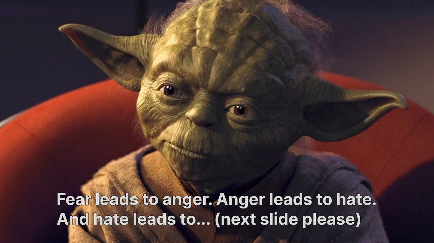 I honestly think this is true, in some sense. Anyone who’s well into a professional career has experienced, at some point, the scary feeling that they have lost control over their situation. This often comes after a promotion, maybe into a managerial or a staff role, where you’re in some small crisis and you must construct a slide deck for a meeting to try and rescue things. This is a tough situation, and I feel for each one of you that’s recalling some such experience from your past life. In that moment, the job-to-be-done of PowerPoint is therapy. It tells you, “we’re going to make it through this, together”: not by solving the situation, but by surviving it, with the divide-and-conquer method into slides and bullet points.