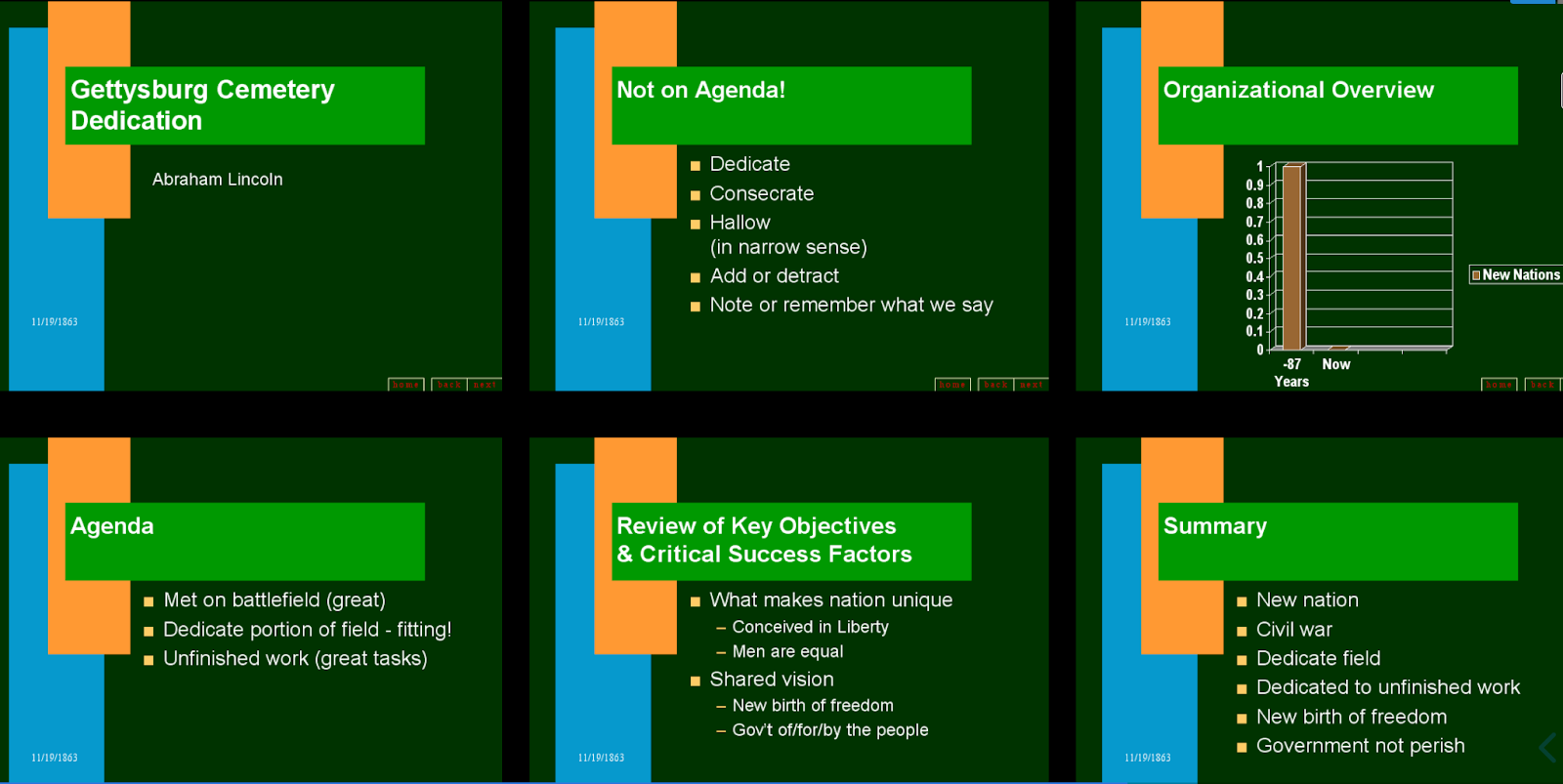 Most of the time, PowerPoint is not exactly doing harm; it’s just going to steer you somewhere uninspiring. But occasionally the slide format can actually derail things in a bad way. When every bullet point and slide must defend their existence alone, they are more likely to present fully untested or inaccurate assumptions as fact. Their validity derives from their eligibility, not from their factual or contextual legitimacy.