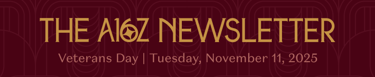 This newsletter is provided for informational purposes only, and should not be relied upon as legal, business, investment, or tax advice. Furthermore, this content is not investment advice, nor is it intended for use by any investors or prospective investors in any a16z funds. This newsletter may link to other websites or contain other information obtained from third-party sources - a16z has not independently verified nor makes any representations about the current or enduring accuracy of such information. If this content includes third-party advertisements, a16z has not reviewed such advertisements and does not endorse any advertising content or related companies contained therein. Any investments or portfolio companies mentioned, referred to, or described are not representative of all investments in vehicles managed by a16z; visit https://a16z.com/investment-list/ for a full list of investments. Other important information can be found at a16z.com/disclosures. You’re receiving this newsletter since you opted in earlier; if you would like to opt out of future newsletters you may unsubscribe immediately.