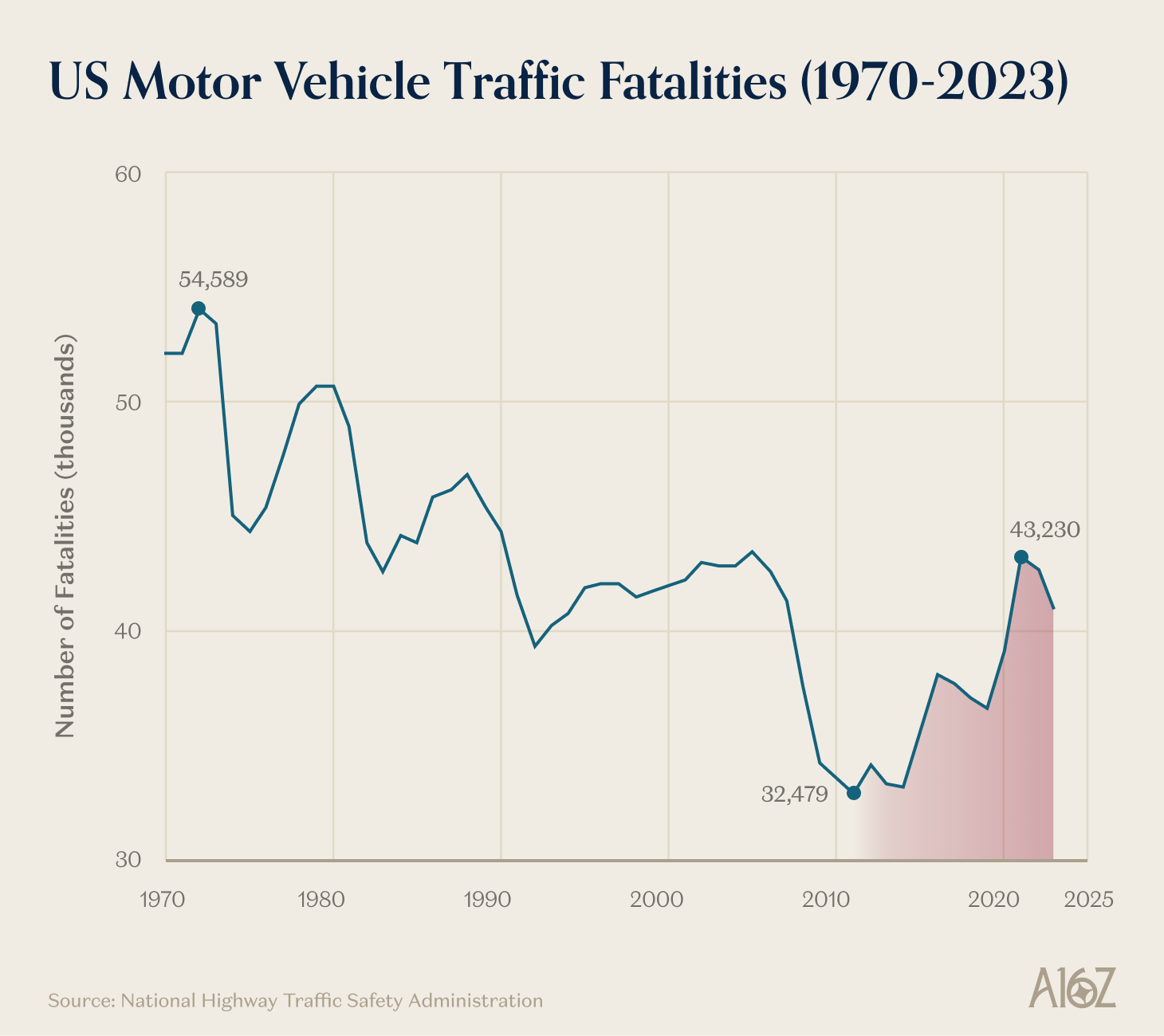 We had been making remarkable social progress on this problem, year in and year out, for decades. Seatbelts, crumple zones, airbags, drunk-driving enforcement, just plain better driving standards—year after year, per-mile deaths went down. But then something happened. A new, competing social technology arrived; and for all its benefits to the world, it was not good for driving safety at all. That technology was the smartphone.