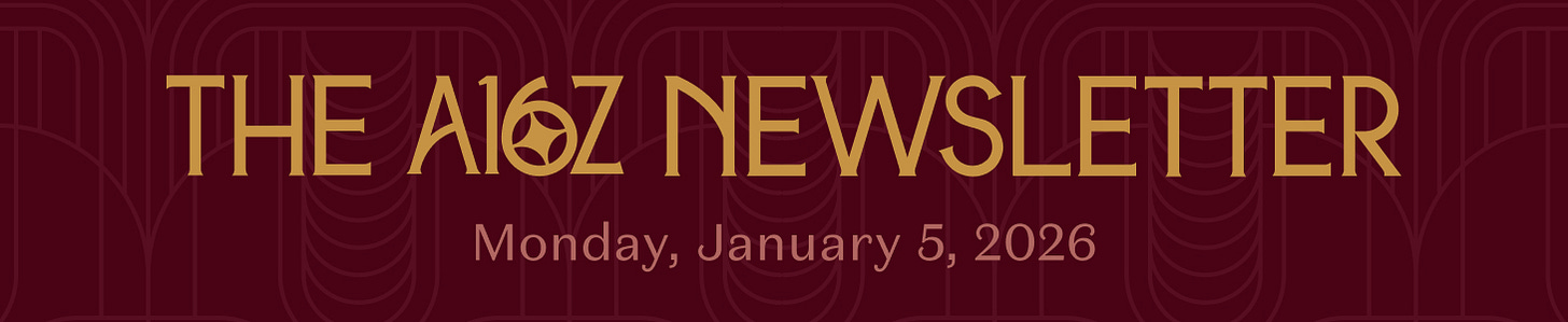This newsletter is provided for informational purposes only, and should not be relied upon as legal, business, investment, or tax advice. Furthermore, this content is not investment advice, nor is it intended for use by any investors or prospective investors in any a16z funds. This newsletter may link to other websites or contain other information obtained from third-party sources - a16z has not independently verified nor makes any representations about the current or enduring accuracy of such information. If this content includes third-party advertisements, a16z has not reviewed such advertisements and does not endorse any advertising content or related companies contained therein. Any investments or portfolio companies mentioned, referred to, or described are not representative of all investments in vehicles managed by a16z; visit https://a16z.com/investment-list/ for a full list of investments. Other important information can be found at a16z.com/disclosures. You’re receiving this newsletter since you opted in earlier; if you would like to opt out of future newsletters you may unsubscribe immediately.