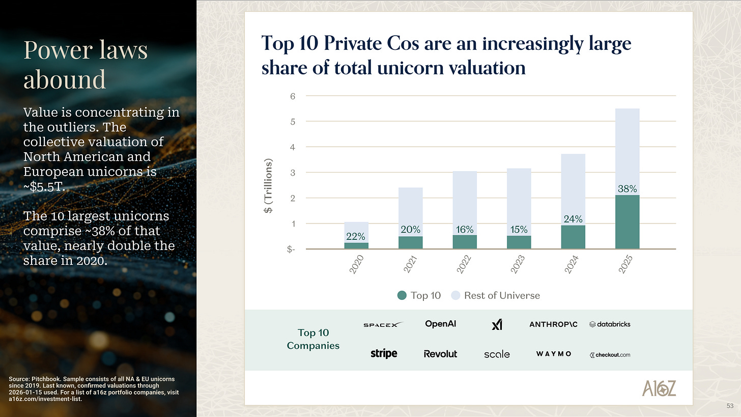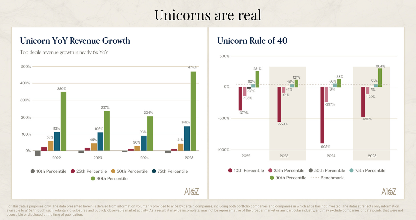 It’s a power law business; always has been. In 2025, Revenue growth exploded upwards for the top quartile and top decile companies, far more than for everybody else.