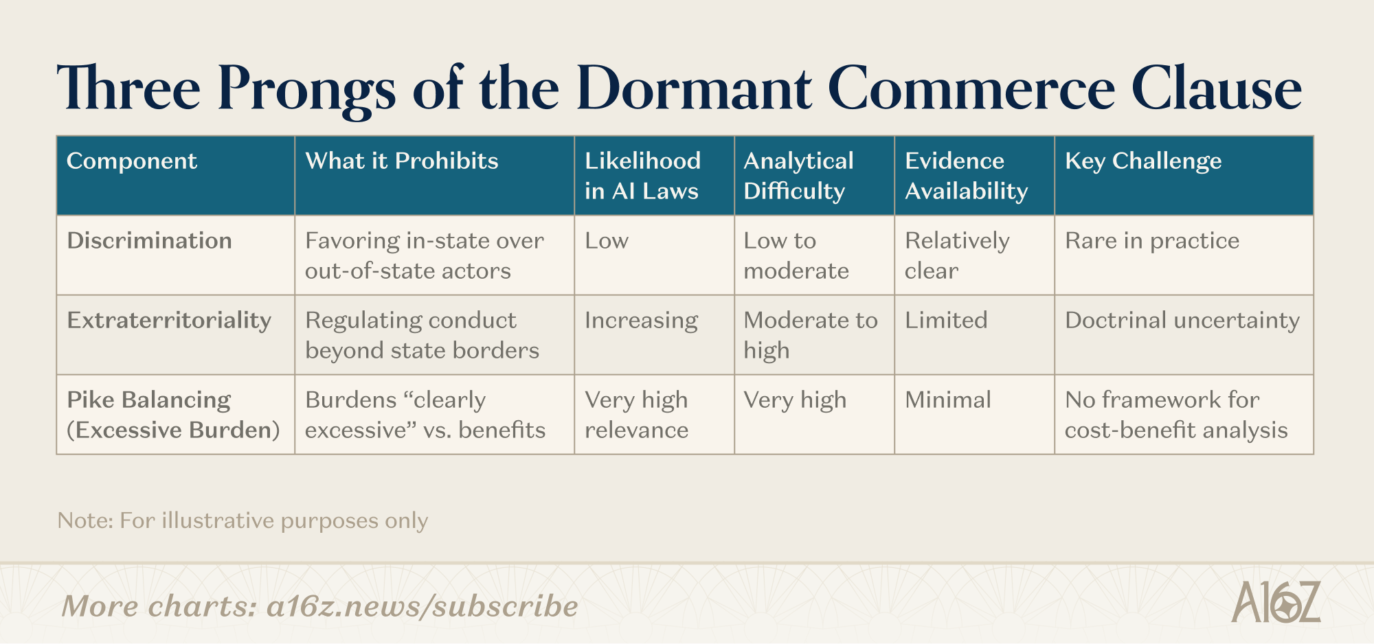 Of these, discrimination is the most constitutionally suspect, but the least likely to appear in state AI legislation. States rarely design AI laws to treat out-of-state providers worse than in-state ones.