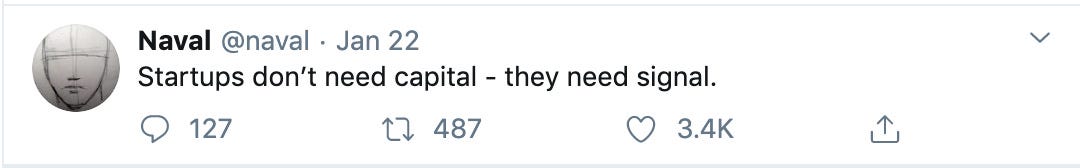 As a new founder with a fledgling startup, you have an obvious problem. The thing all startups need is preferential attachment - for the best customers, hires, and fans to all want to preferentially attach themselves to you. But you don’t have any signal yet. And people usually attach to high-signal stories, not the low-signal ones. So how do you bootstrap yourself some signal?