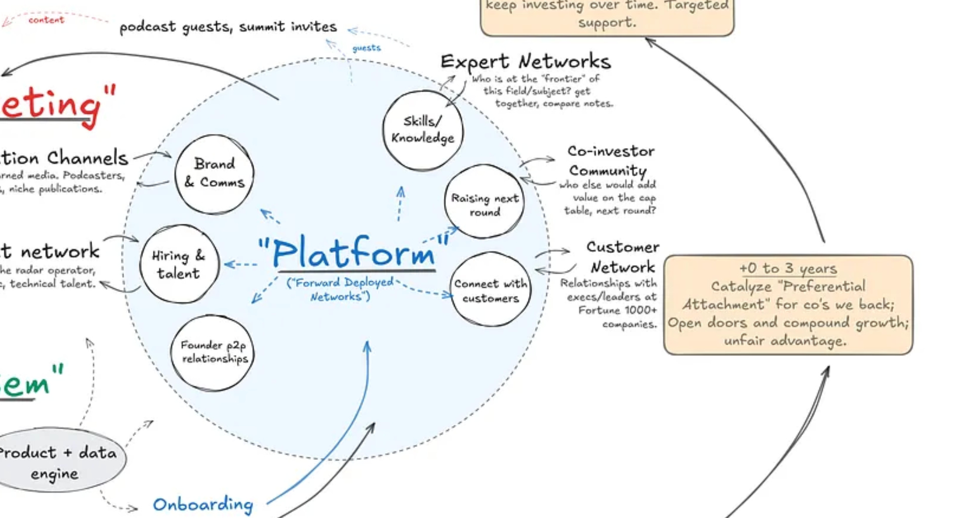If you zoom in on that big flowchart I posted when I joined a16z, you’ll see how much of the important sauce is about preferential attachment, opening doors for hiring, customers and peers.