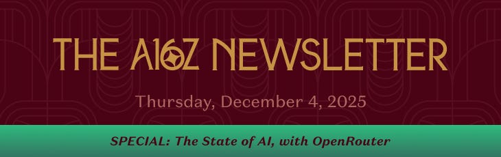 This newsletter is provided for informational purposes only, and should not be relied upon as legal, business, investment, or tax advice. Furthermore, this content is not investment advice, nor is it intended for use by any investors or prospective investors in any a16z funds. This newsletter may link to other websites or contain other information obtained from third-party sources - a16z has not independently verified nor makes any representations about the current or enduring accuracy of such information. If this content includes third-party advertisements, a16z has not reviewed such advertisements and does not endorse any advertising content or related companies contained therein. Any investments or portfolio companies mentioned, referred to, or described are not representative of all investments in vehicles managed by a16z; visit https://a16z.com/investment-list/ for a full list of investments. Other important information can be found at a16z.com/disclosures. You’re receiving this newsletter since you opted in earlier; if you would like to opt out of future newsletters you may unsubscribe immediately.