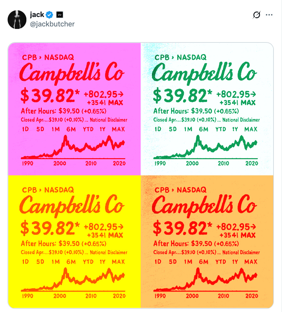 In the 60’s and 70’s, the dominant art movement was Pop Art, and the recessive movement was Fluxus. Pop Art, the decoy, was a movement defined by commodifying the already-commodified, and resulted in (at the time) record-setting auction prices for living American artists like Andy Warhol and record-setting auction prices in the posthumous decades to come. Fluxus, the truth, treated art as an open-source instruction manual whose only finished form was performance: destroy a piano, prepare and eat a salad, cut away my clothing. There was nothing left at the end of the work, and therefore nothing to sell. The dominant decoys of every era are focused on surfaces, the recessive truths are focused on methods.