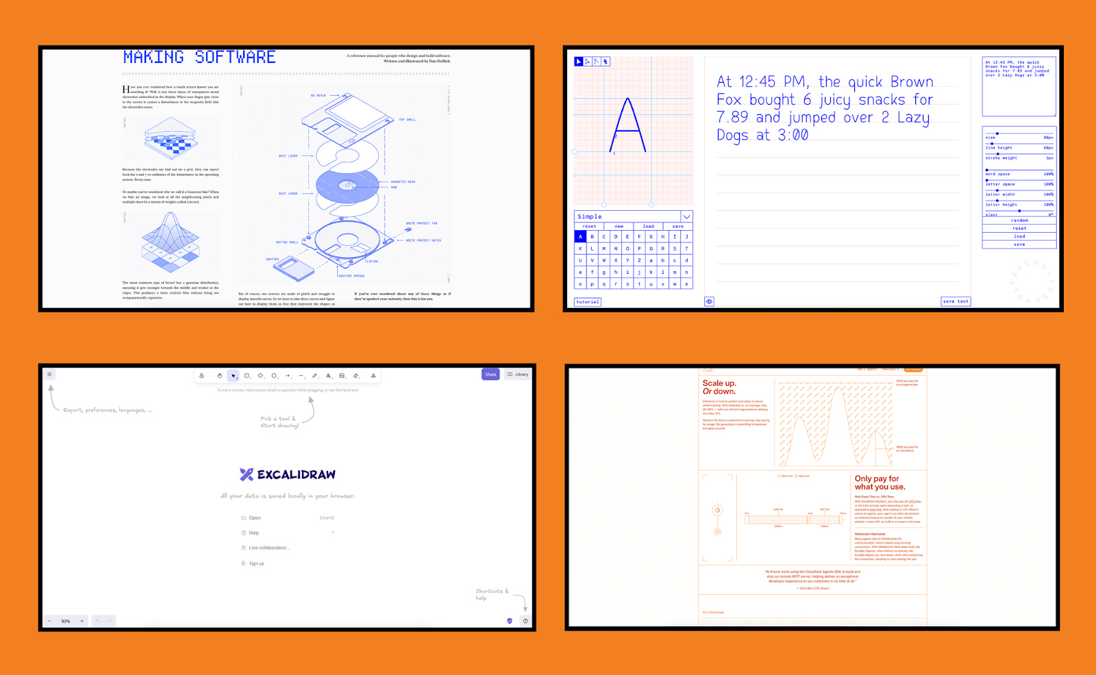 paperclip-punk is everywhere, but what does it look like and why hasn’t it been identified before? Here are a couple of visual tenets of paperclip-punk: light, bright website (no darkmode), clean exploded-view diagrams, interactive graphs, minimalist animation, font derivatives from the Satoshi, Inter, Söhne, Berkeley Mono, or Jetbrains Mono families, industrial blue-print-y colors (#0050FF HEX blues, #F38020 HEX oranges), integrated real-time data and interface-level responsiveness, infinite on-hover tooltips, developer “playgrounds” or “sandboxes”, and a rejection of passivity: the process of interacting with the visuals teaches you about their underlying meaning.