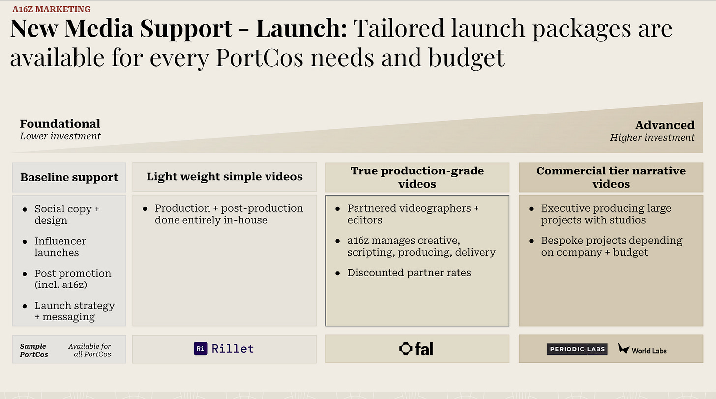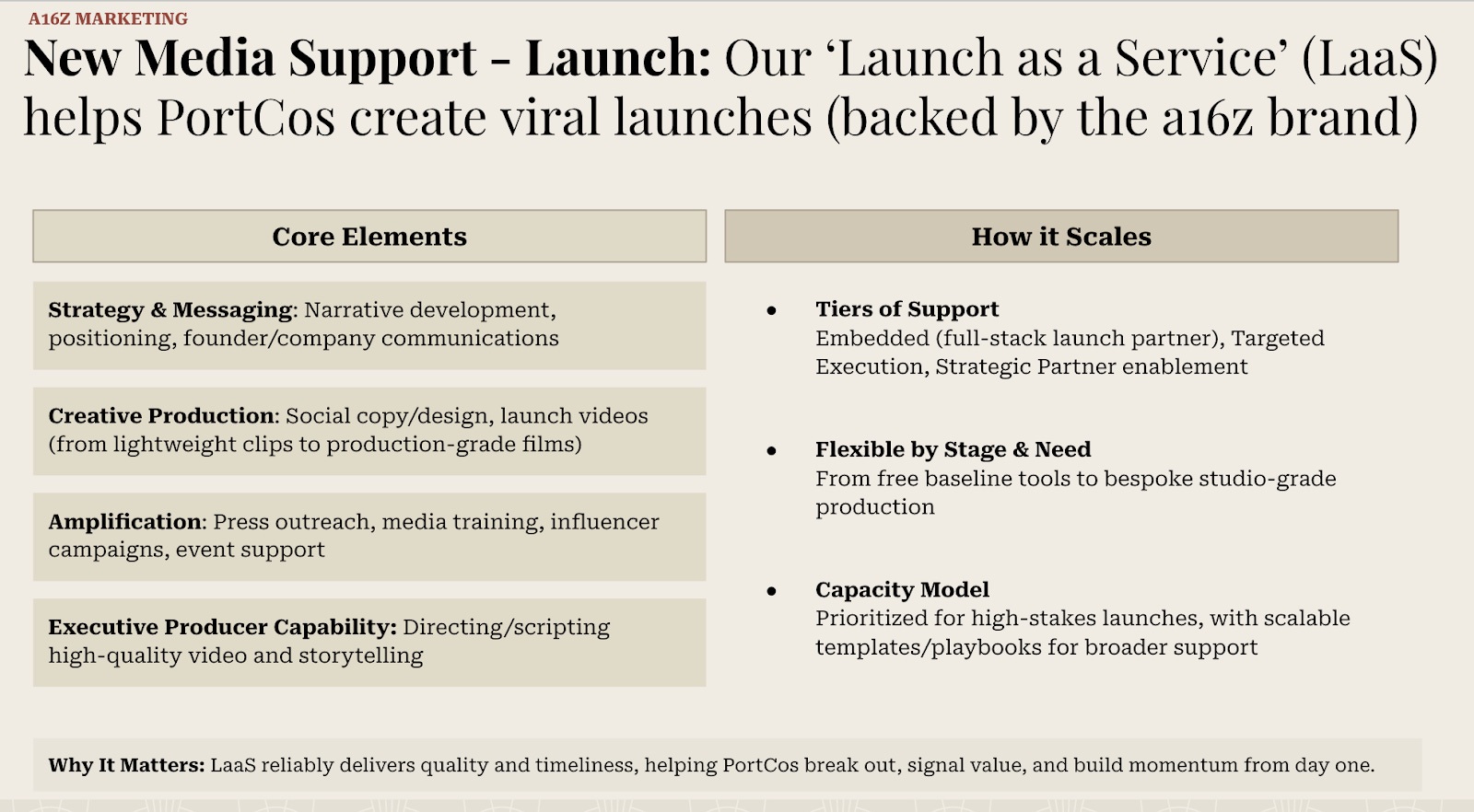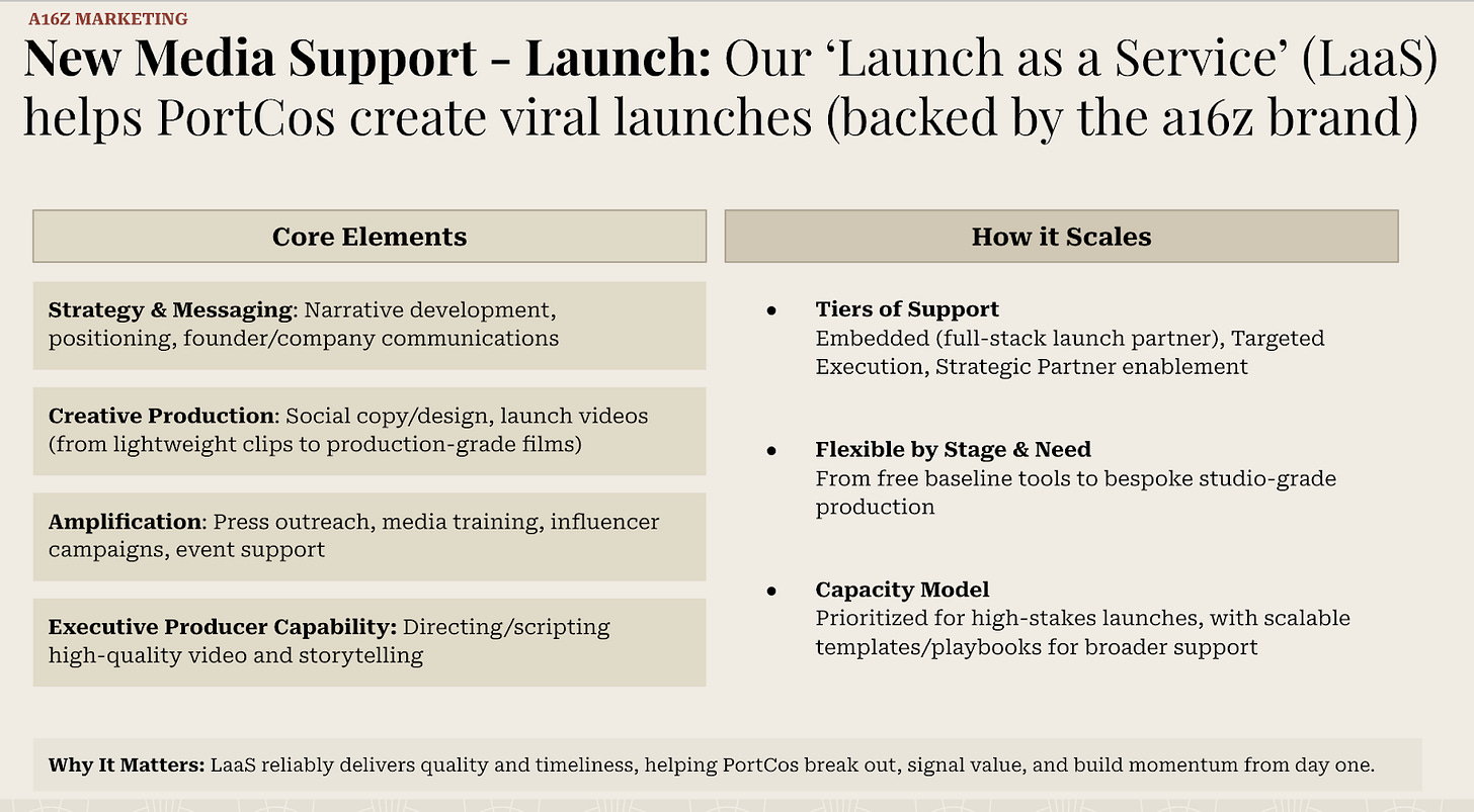 “Launches as a service” is designed to catapult your brand forward, with our brand. And a lot of ingredients go into it: a great launch video, a powerful interview, a provocative blog post, banger tweets, these all matter. But what also matters is having a team that can snap their fingers and execute it at the turnaround speed that startups need. The old agency SLA of 3 to 6 months to plan a launch is just archaic; you have to be able to execute all of this in a shockingly short period of time.