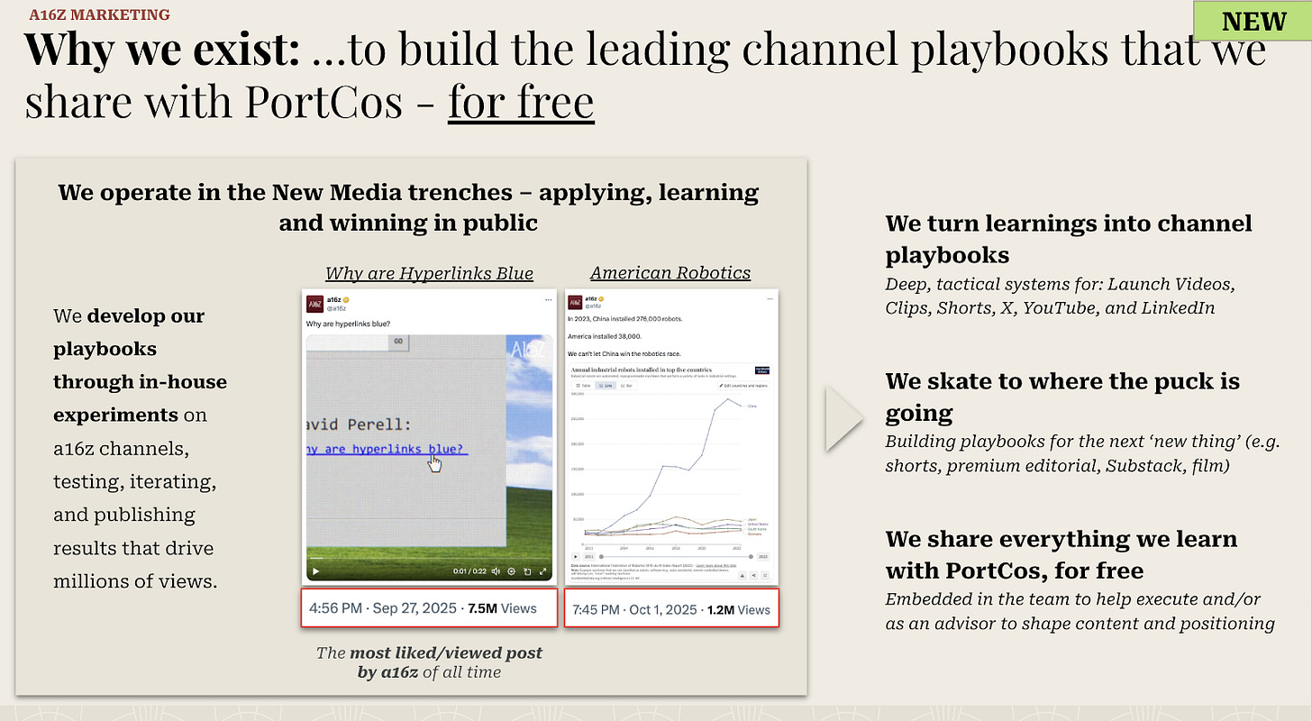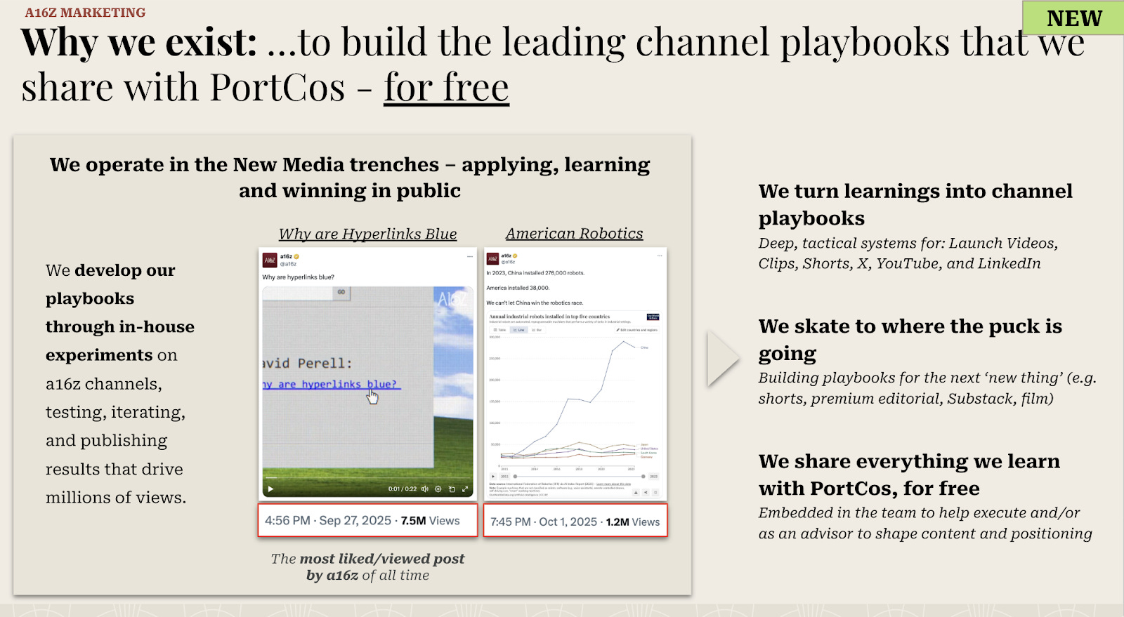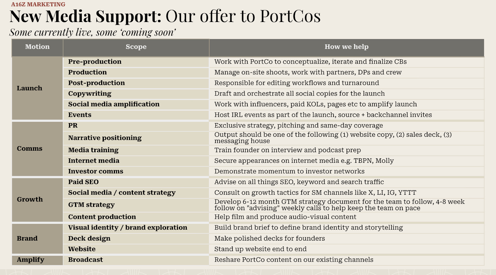 This initiative, the New Media Fellowship, is how we really scale our impact across the whole a16z portfolio. We’re training a cohort of builders who know how to execute a timeline takeover, who can drop into a company, embed for a launch, and leave behind muscle memory for storytelling, distribution, and community. Over time, many will stay at those companies and rise up to influential positions, some will spin out, and some may even go on to start companies of their own, which we’d be excited to welcome back into the a16z family.
